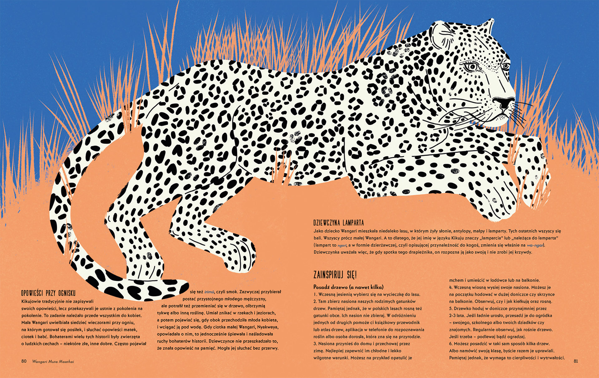 "Wielkie przygody w świecie przyrody" ("Great adventures in the world of nature") by Wojciech Mikołuszko is a children book about some of the most outstanding figures working with nature on different fields (science, art, philosophy, music, climate change, photography etc.). I designed illustrations and complete layout for the book. Through the design process, I was trying to put nature in the spotlight. That's why the figures in the book appear as black silhouettes surrounded by nature. The book has 20 chapters each featuring one figure from a wide range of space and time: from Henri Rousseau, Rachel Carson, Jane Goodall, David Attenborough to Greta Thunberg.