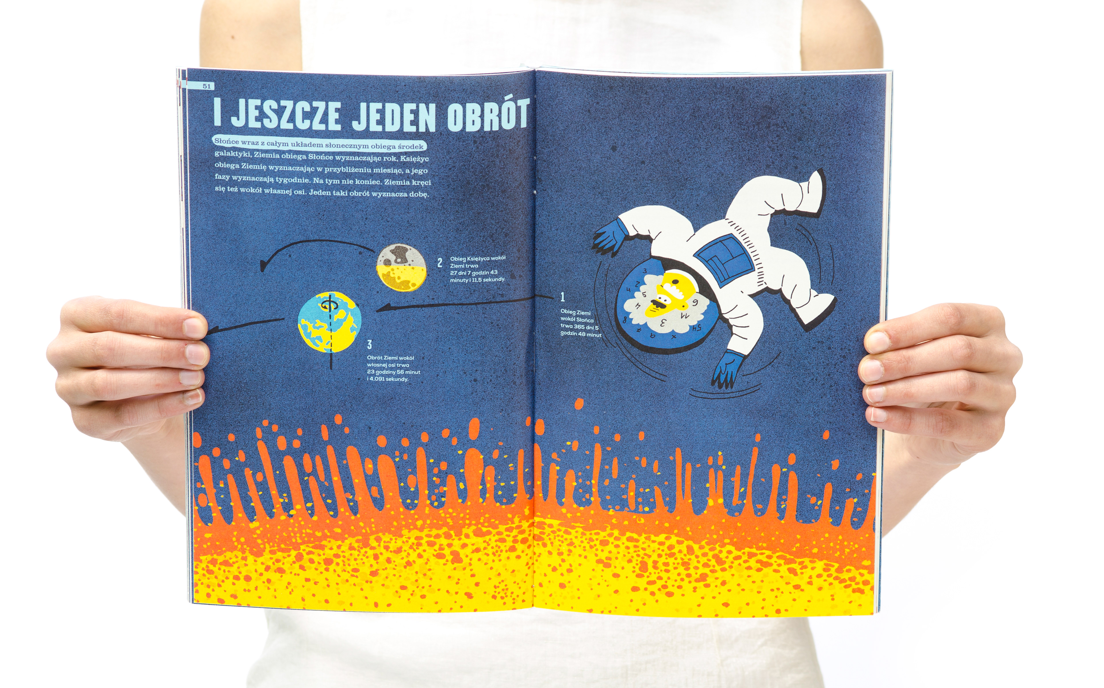 Ready, go! is a book about time for children at the age of 8 to 10. The book describes the main themes concerning time. on the bright spreads there is a story of calendars and watches, while the dark spreads explain the concept of main divisions: years, months and hours. The book was published by MUZA S.A. The project was made in Book Design Studio of prof. Maciej Buszewicz and Daniel Mizieliński in the Graphic Art Department at the Academy of Fine Arts in Warsaw. text: Piotr Karski Format / Size: 295 x 180 mm 88 stron / pages