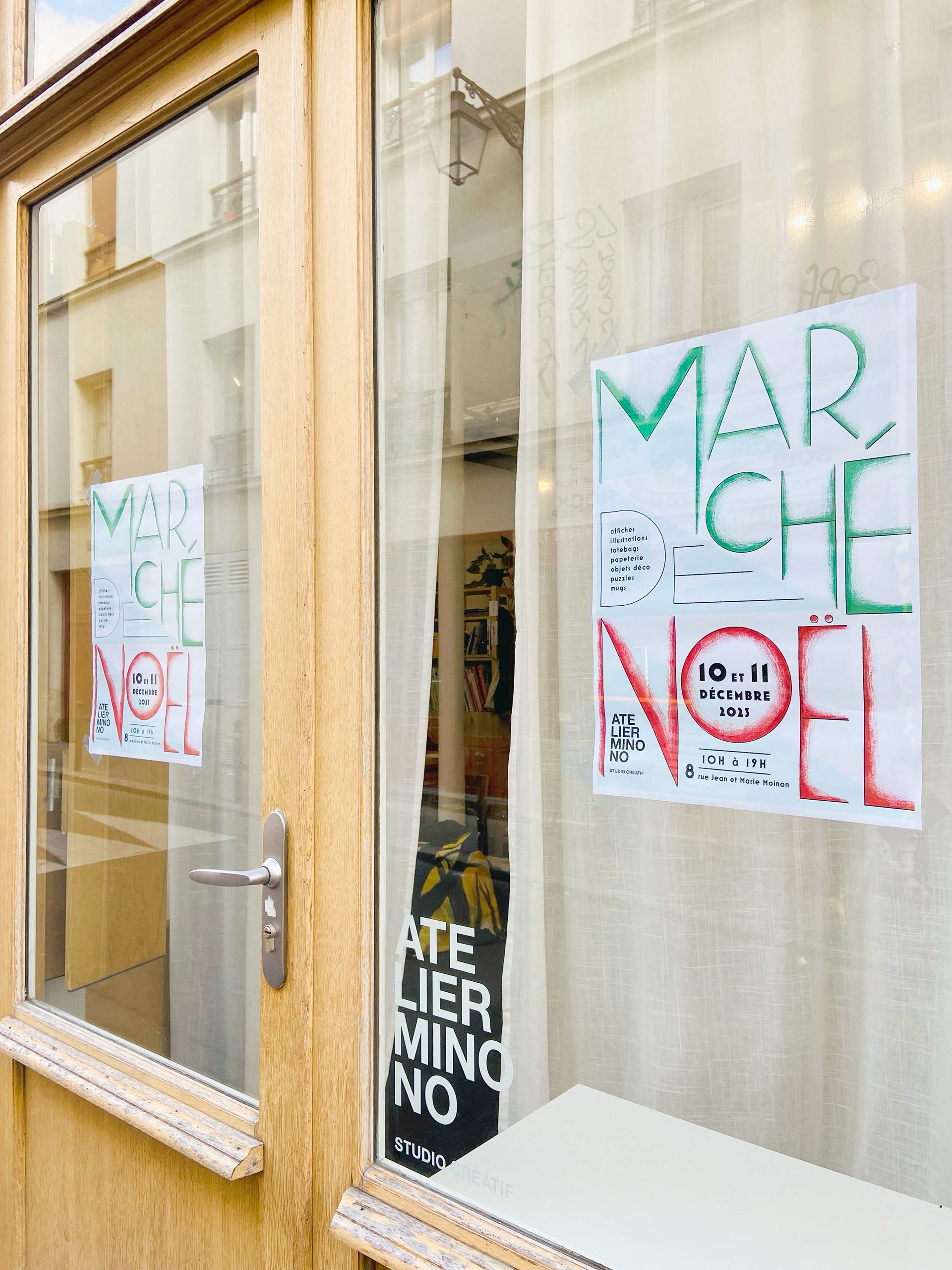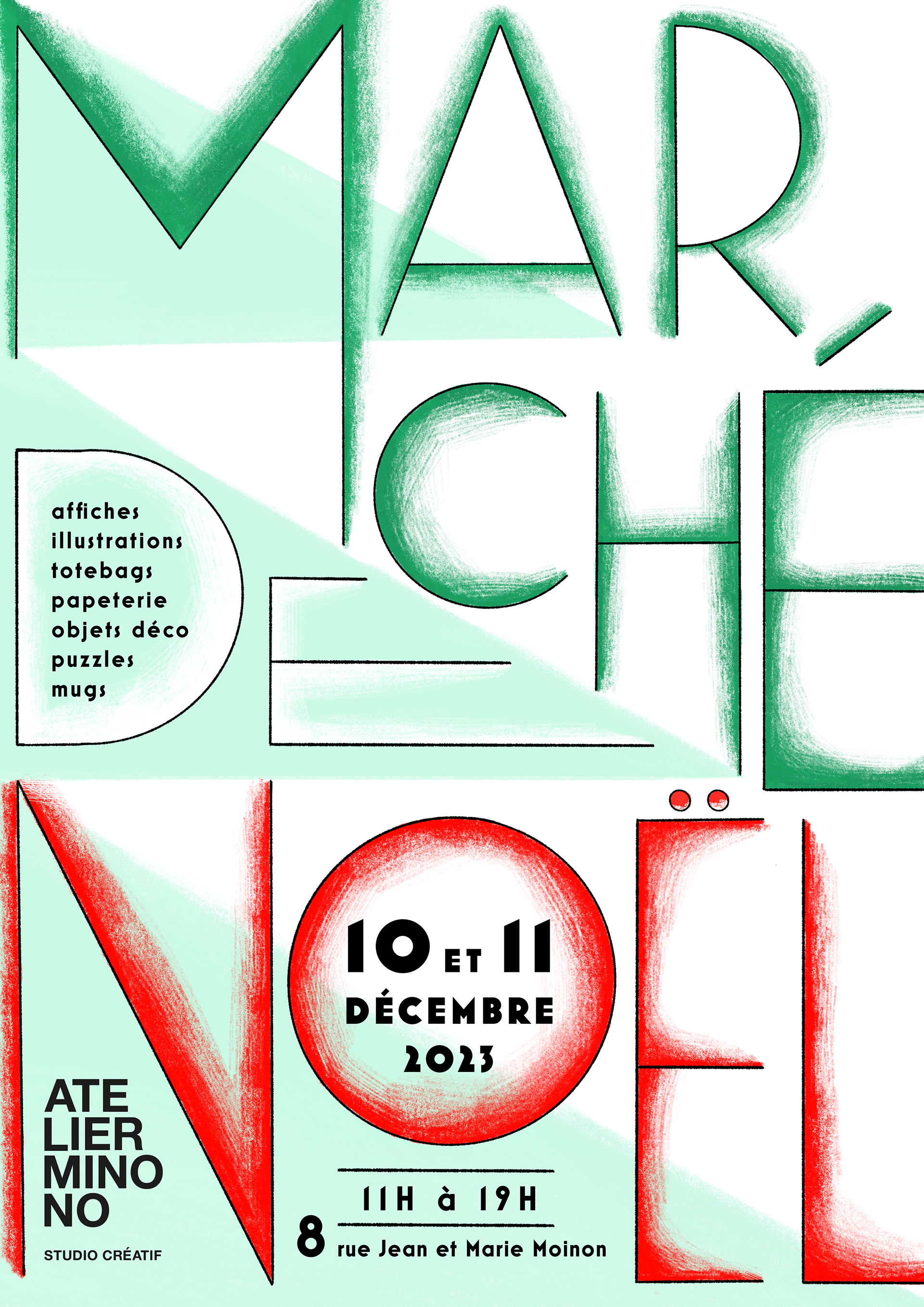 Typographic poster for the Christmas Market at Atelier Minono. Limited edition by Quintal Editions. Affiche typographique pour Marché de Noël de l'Atelier Minono. Miniédition / Quintal Editions